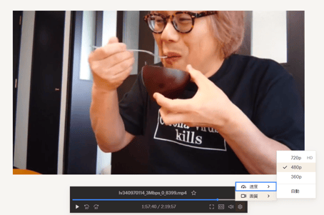 *再生が止まる場合は、画質を480pまたは360pにしてお楽しみください。(写真参照)