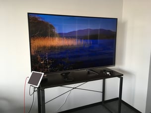 60型ディスプレイとiPadによるホワイトボード操作が可能な、