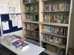 ここが、KJで使用する教材が置いてある本棚です。