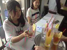 休み時間には、ウェルカムドリンクを飲みながら景色を満喫。