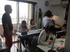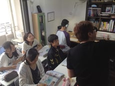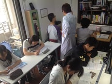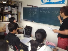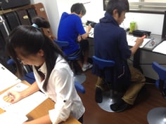 この日は、2つある教室のRoom1が中学部用、中2が3名、中3が2名の5名塾で開講。(Room2は高校生6名同時開講)