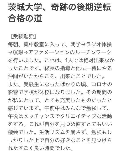 というわけで、本日、本校2名の茨城大学合格、それぞれに形があります。