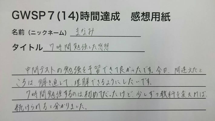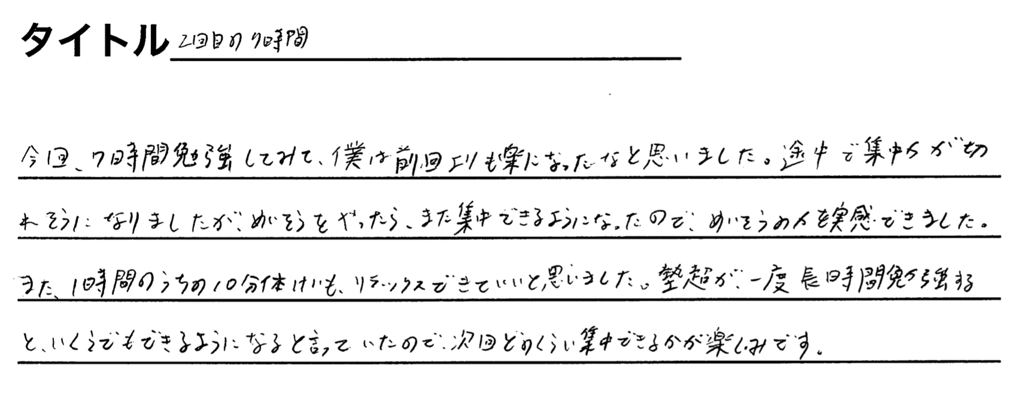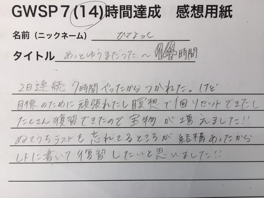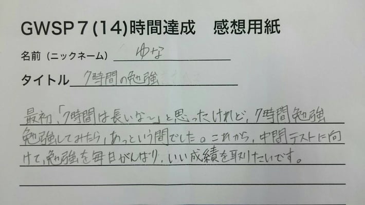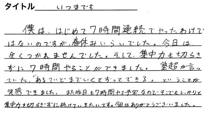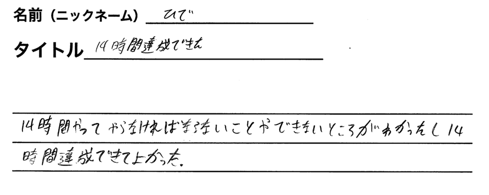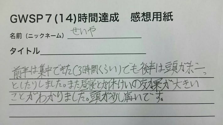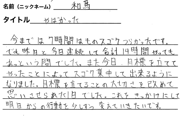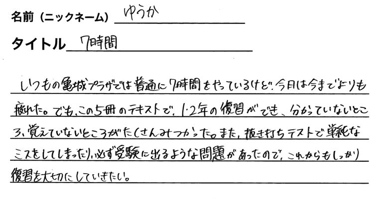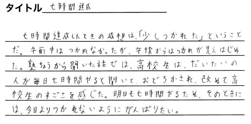 7時間に挑戦しよう! 記録用紙を印刷して毎時間記入して下さい。