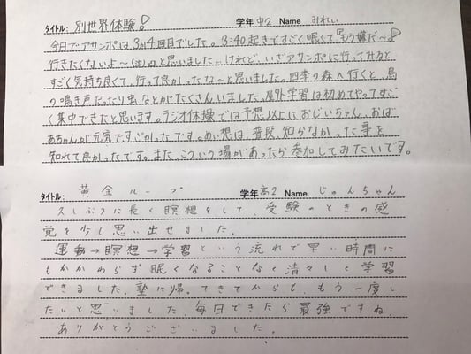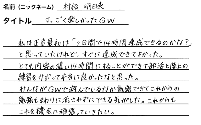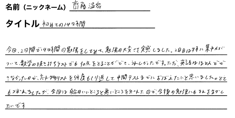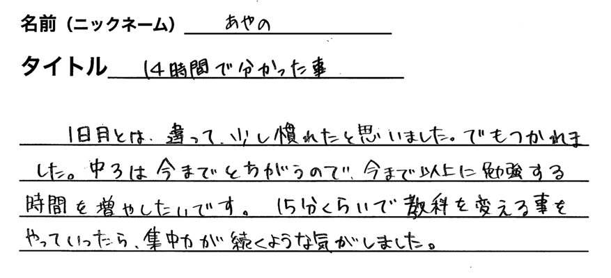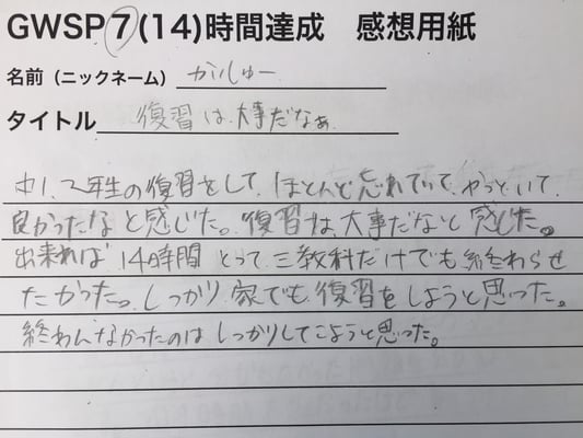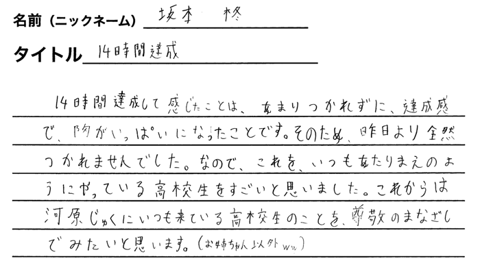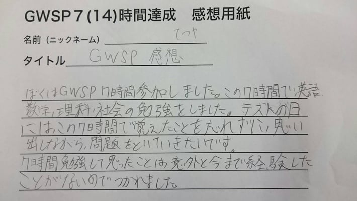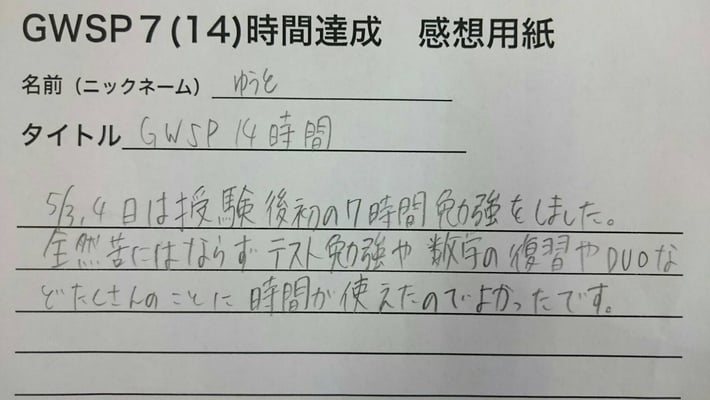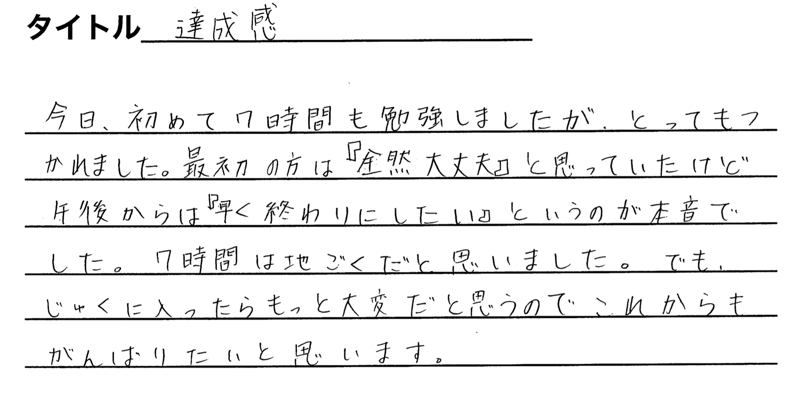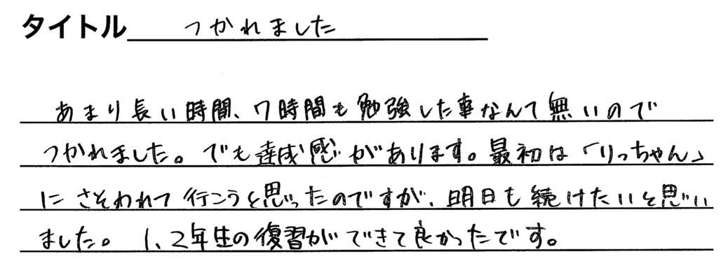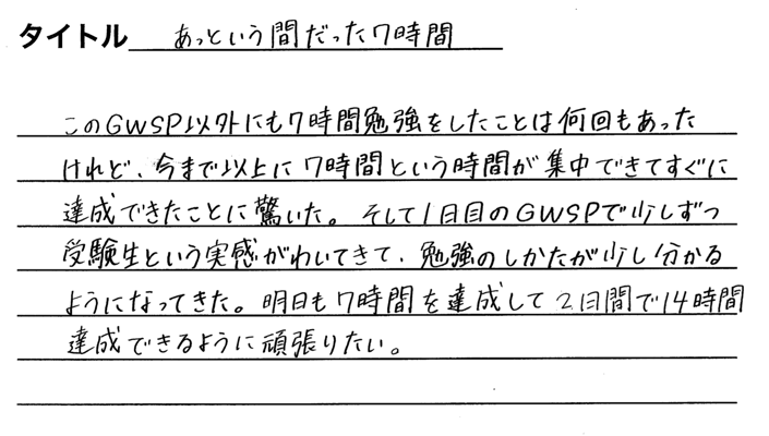 7時間に挑戦しよう! 記録用紙を印刷して毎時間記入して下さい。