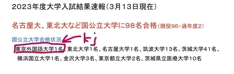 *高校の合格実績のトップに書かれています!(土浦二高HPより抜粋)