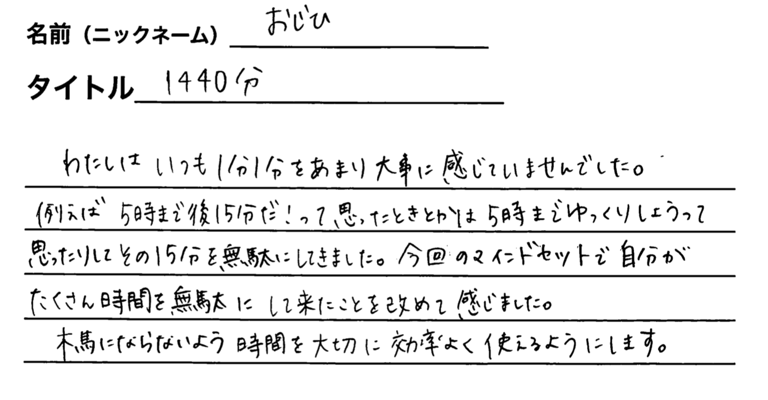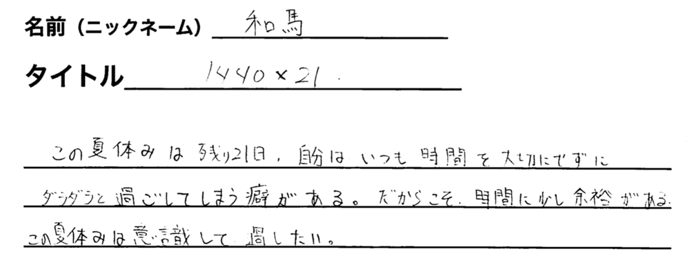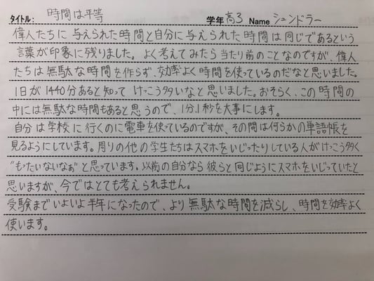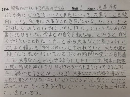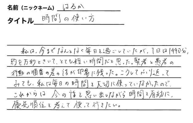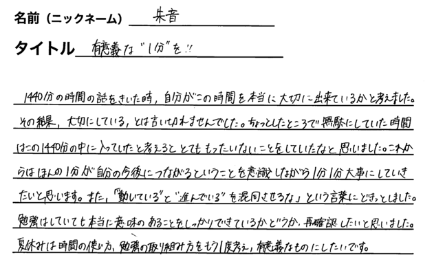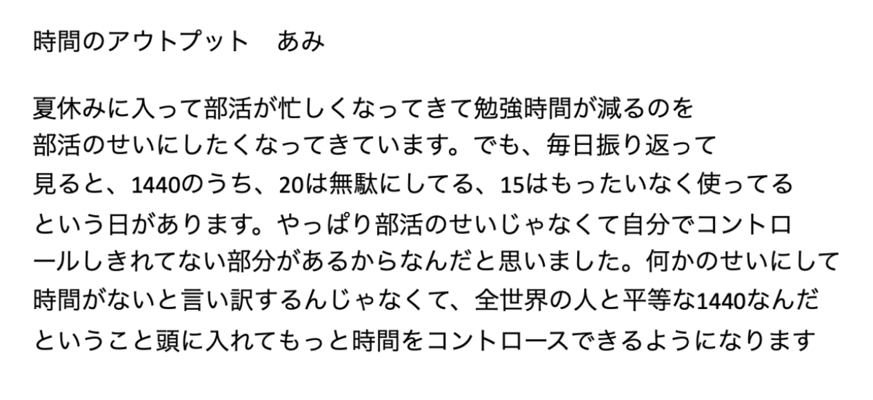 まさしく、時間管理に関することで、夏季休暇にふさわしいお話でした。