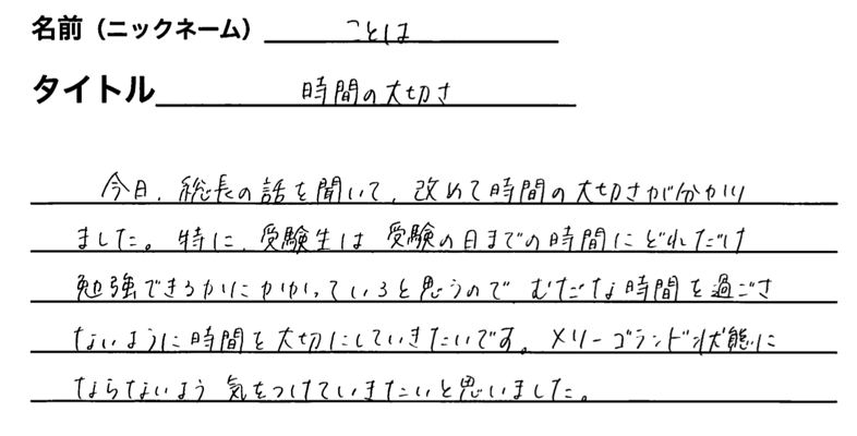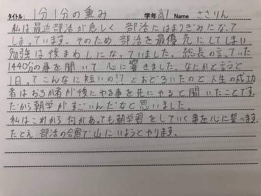 7/29夏期講習、第2クールの3日目、朝の時間に総長からのマインドセットがありました。