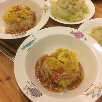 スープ(水1カップ&かに缶の汁)