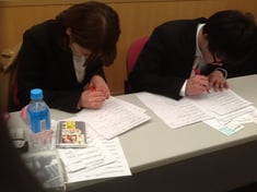 抜き打ちテストをリアルタイムで採点していくチューターの2人。